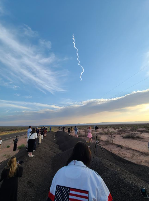 A photo of people watching the NS-31 rocket launch into space (Naina Agrawal/The Lambert Post). — (I Reported on the New Shepard-31 Rocket Launch: Here’s What I Learned/article)